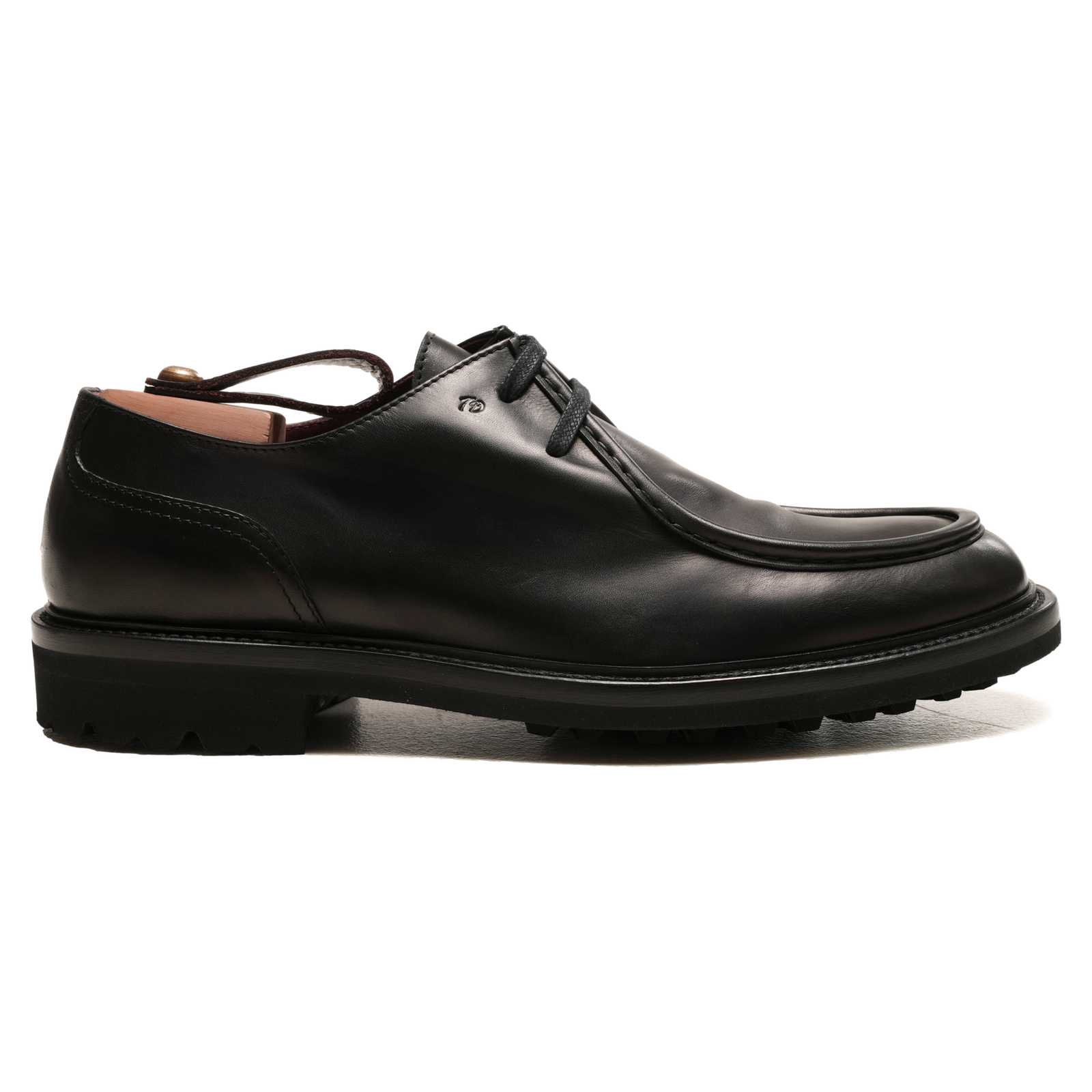 OSLO è la stringata in pelle di vitello che con le sue forme non convenzionali sono riconoscibili ovunque, amabilmente espresse dalle cuciture artigianali sulla punta, montata su un robusto e leggero fondo roccia in gomma VIBRAM.